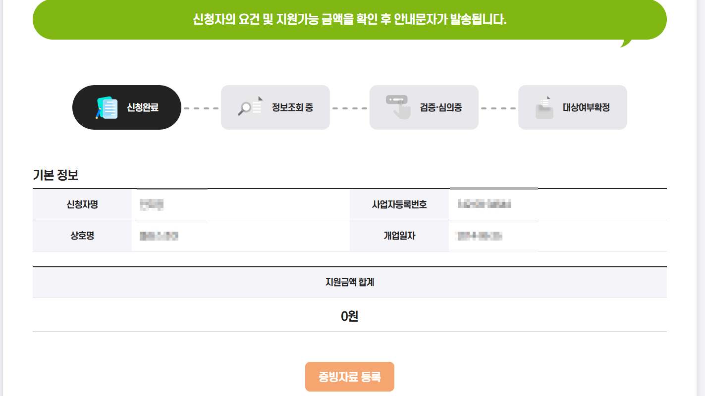 저처럼 택배사를 이용하거나 직접배달 이용하시는 분들은 신청후 지원 요건이 충족된다면 문자를 보낸다고 해요. 그 후 증빙 자료를 등록하면 된답니다.