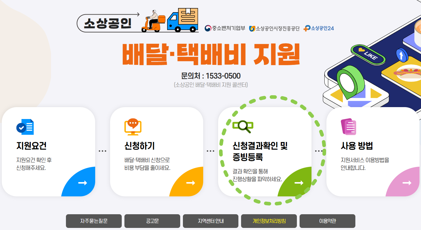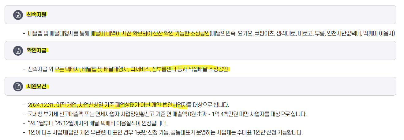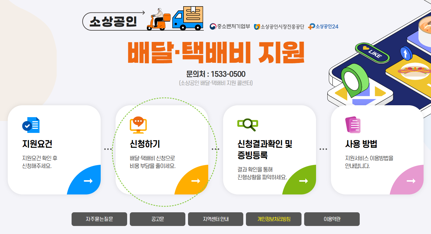 - 신청사이트: 소상공인배달택배비지원.kr 또는 소상공인24