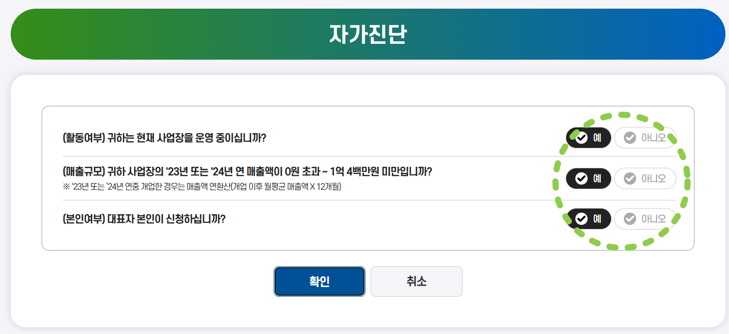 3가지 다 "예"에 해당해야 신청 조건이 됩니다.
